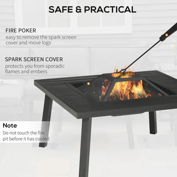 Gather friends and family together to enjoy a roaring fire with Outsunny. Outsunny has a wood-burning fire pit with outdoor-ready materials and a cook-safe grill grate. Share a meal and enjoy the ambiance. Our wood-burning fire pit has edges that double as a dining table, offering a place to put down plates and drink. A mesh lid protects partygoers from flying embers, and a poker keeps hands protected in this all-inclusive outdoor fire pit package. Get out, get comfy, get Outsunny.