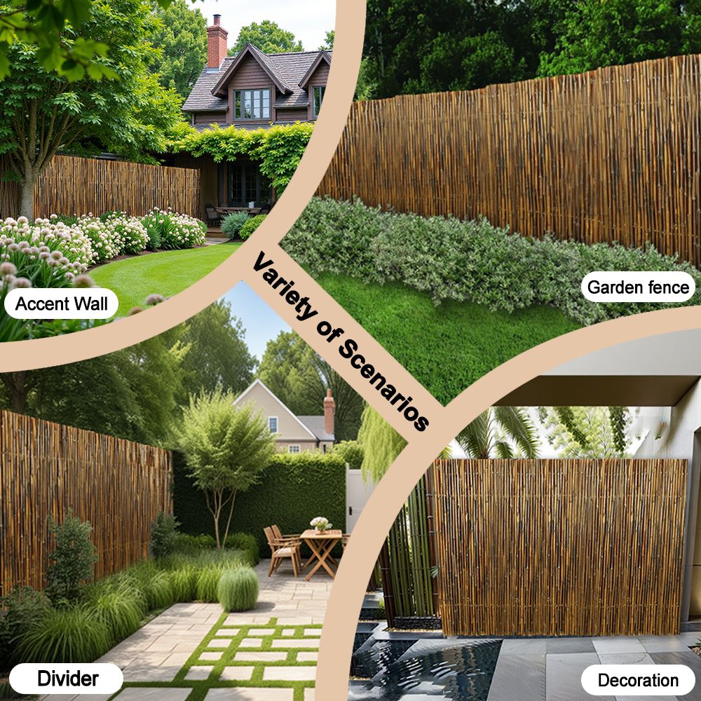 This carbonized bamboo fence utilizes an advanced carbonization process, significantly enhancing its durability and weather resistance, ensuring it remains strong and looking new even after years of use. Bamboo is naturally breathable and environmentally friendly, and the carbonized black finish adds a natural aesthetic to your yard, garden, or terrace while also providing effective privacy protection. Whether used as a fence or decorative element, carbonized bamboo fencing is a perfect choice, making your outdoor space more welcoming, safe, and eco-friendly.