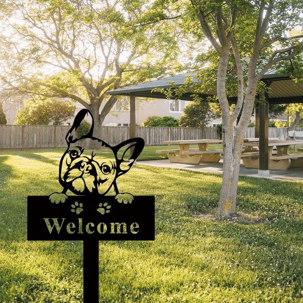 CIFbuy Vintage French Bulldog Welcome Sign Outdoor Garden Patio Decor Lawn Ornament Plant Statue (TikTok, temu pick-up service)