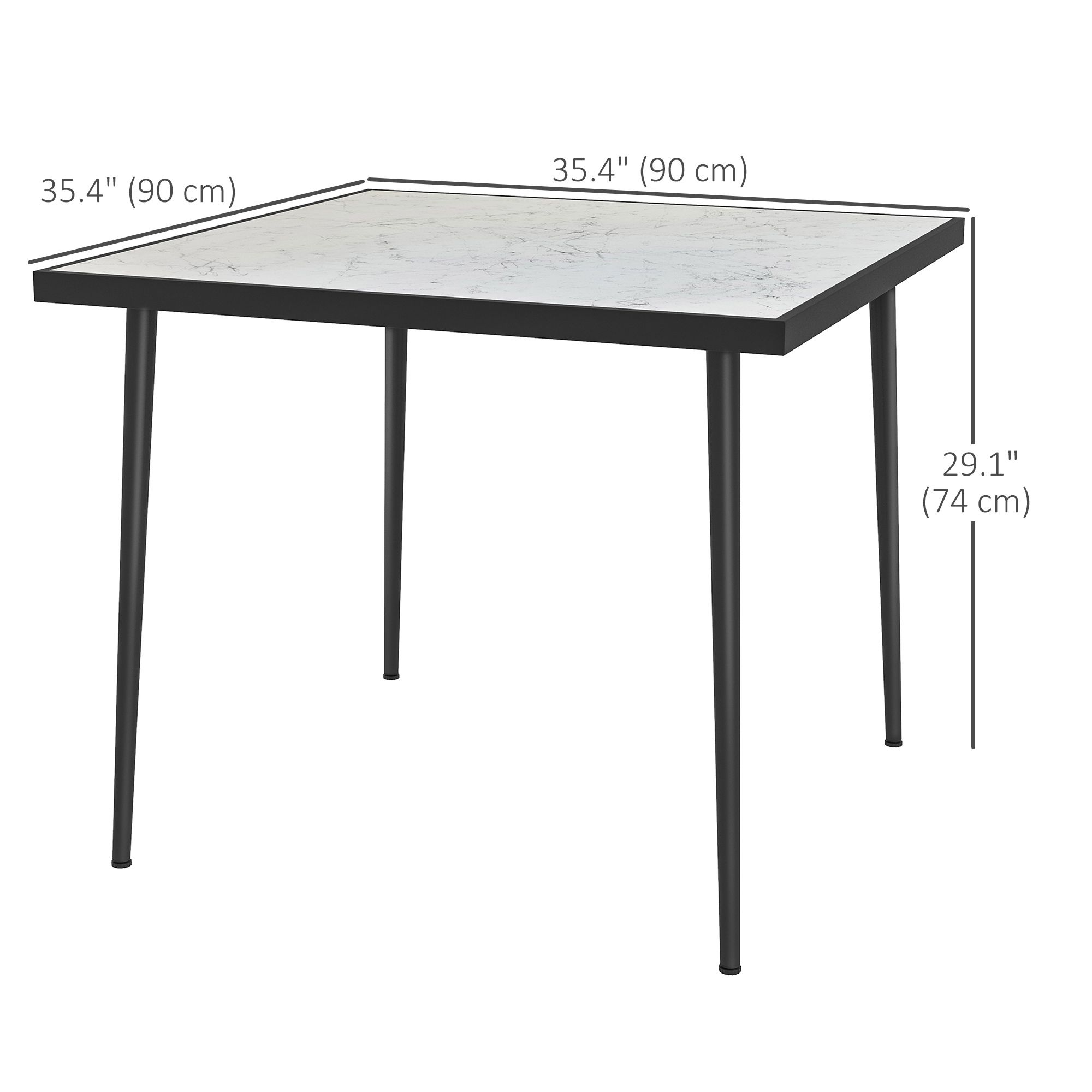 Outdoor Dining Table for 4, Square Patio Dining Table with Marble Effect Tempered Glass Top and Steel Frame, White
