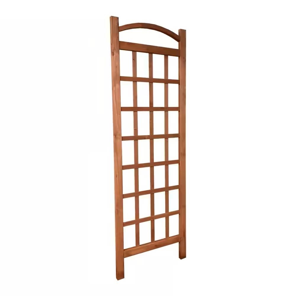 Crafted of solid wood harvested from the Cypress family, our 72-inch Outdoor Solid Wooden Classic Grid Garden Trellis in Brown Wood Finish can withstand harsh environmental elements. It offers an exceptional dimensional stability, standing straight and flat despite moisture or humidity. Similar to Western Red Cedar, it offers strong support for climbing plants, is strong enough to handle weight and has natural preservatives that keep critters at bay. Measuring 24 in. W x 1 in. D x 72 in. H, it is suitable for growing various plants like morning glories, tomatoes, begonias or cucumbers. If you want to incorporate style and character to your garden design, our wooden stand features a curved top, flat finials, a classic grid design and medium brown finish.