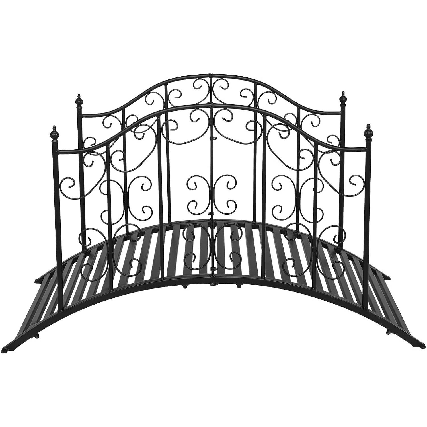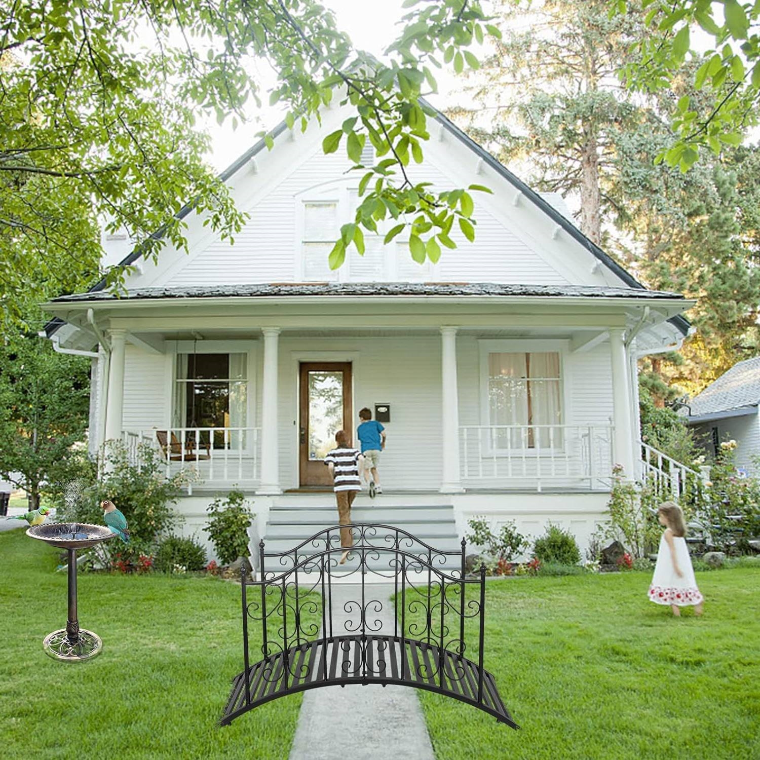 With sturdy metal construction, our Sturdy Outdoor Rust-Proof 4-Foot Black Metal Arch Garden Bridge allows max weight capacity up to 450 lbs. You can assemble River bridge lawn decoration quickly due to its easy set up structure. The side rails are designed with a gorgeous pattern which makes the bridge beautiful and safe.