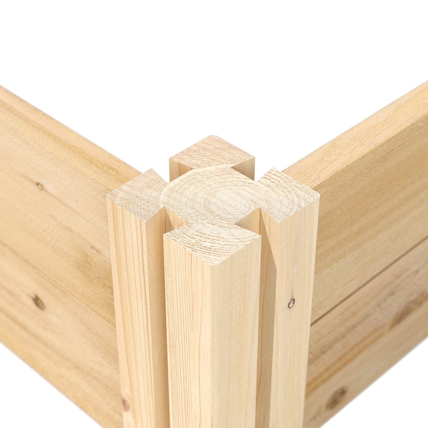 • Easy assembly required. Uses dovetail interlocking joints, which makes assembly a breeze. Each board slides into the corner posts without tools to form a secure open-bottom garden frame. Every corner post is routed on all four sides for easy assembly and expansion. The decorative tops can be added to each post using a screwdriver.