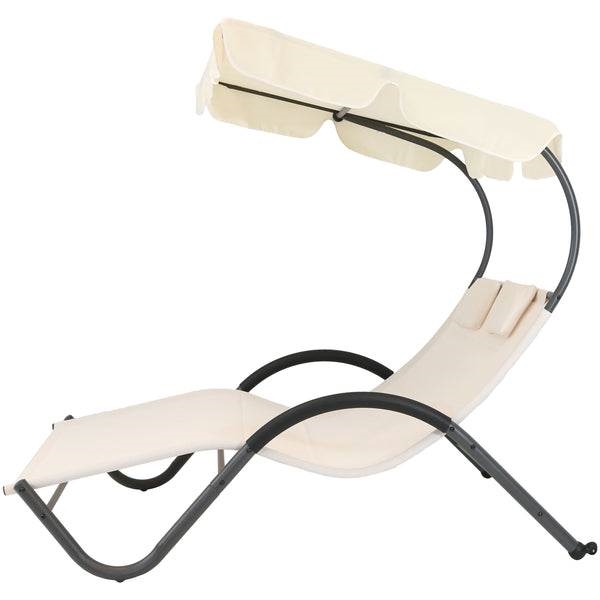 2 Person Off White Outdoor Patio Chaise Lounger Chair Canopy Bed with Pillows
