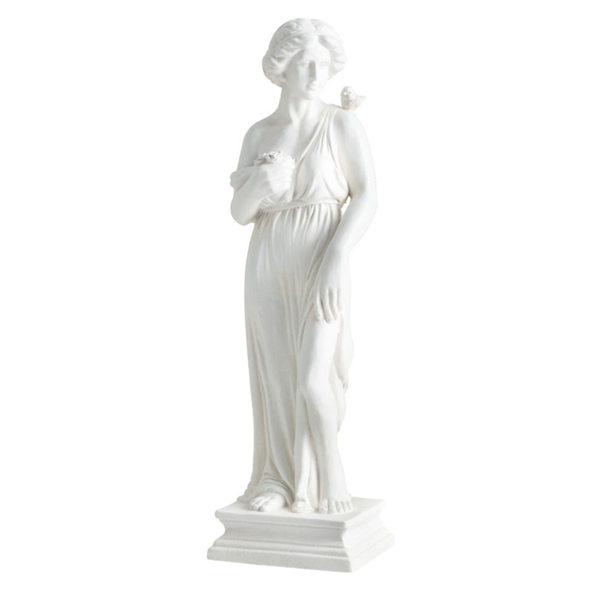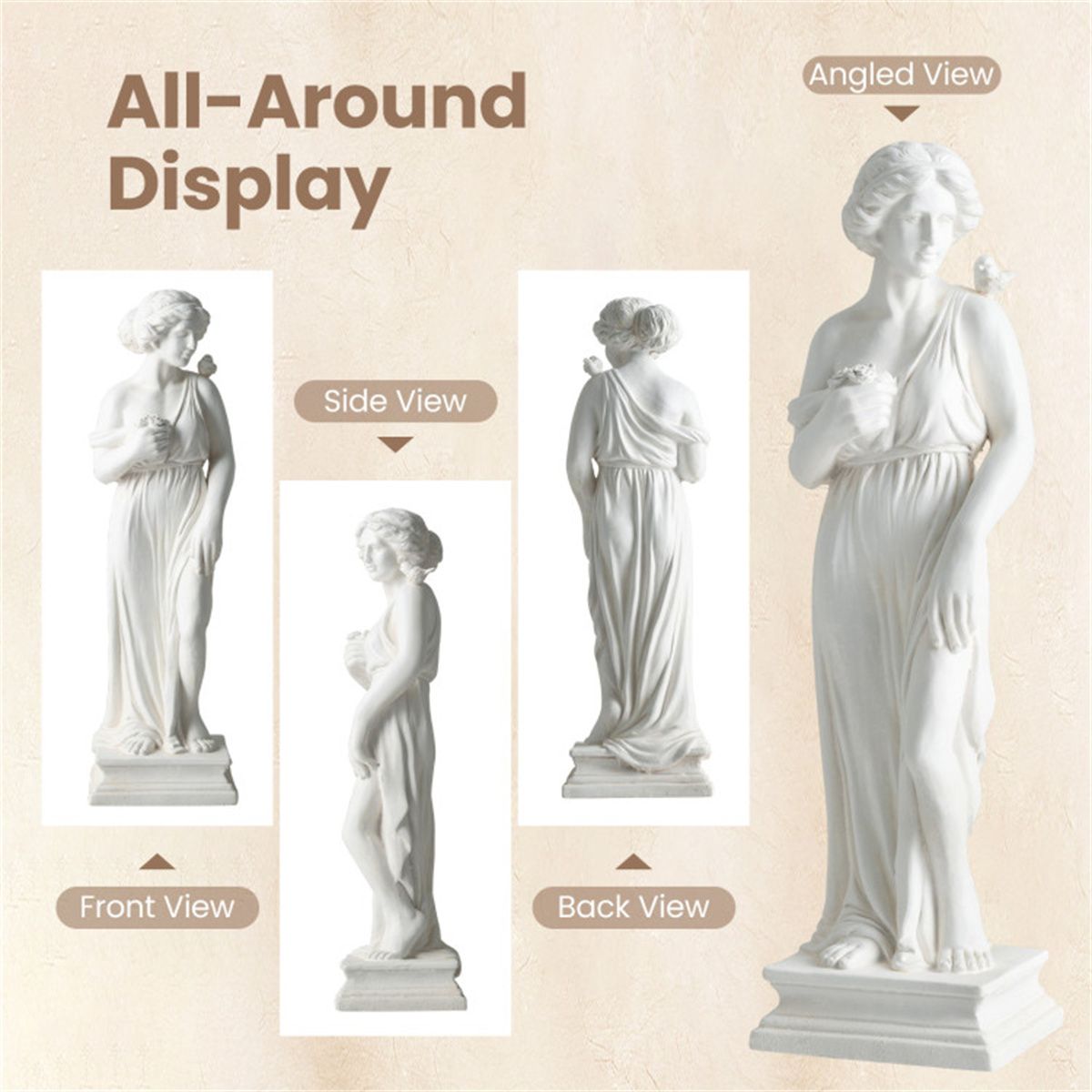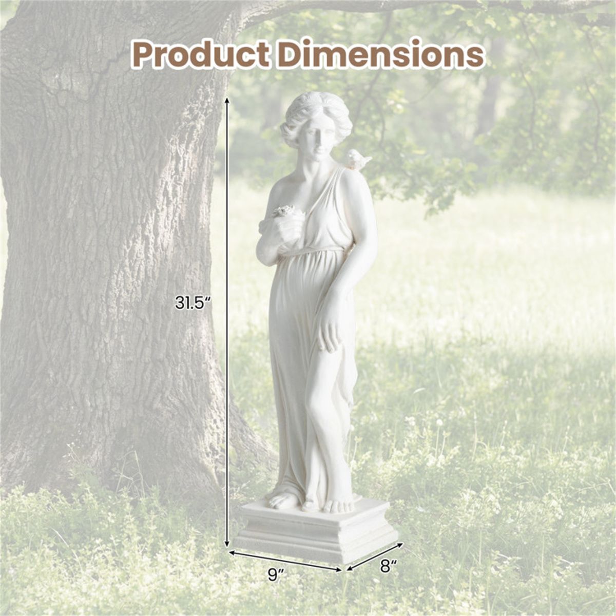 • Elegant Mythic Design: This 31.5" sculpture depicts a Greek goddess holding a bouquet of flowers, smiling toward the small bird resting on her shoulder. Her serene pose brings a mythical charm, instantly adding a graceful focal point to garden paths or indoor settings.