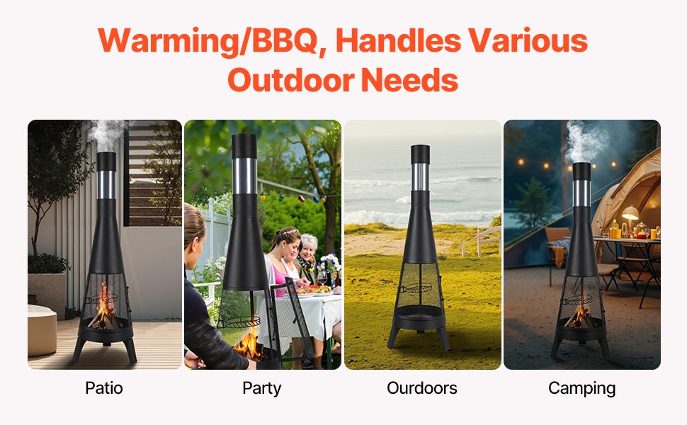 This versatile chiminea is ideal for a range of outdoor needs. Whether it's your backyard, a party, camping, or any outdoor activity, it handles it all effortlessly.