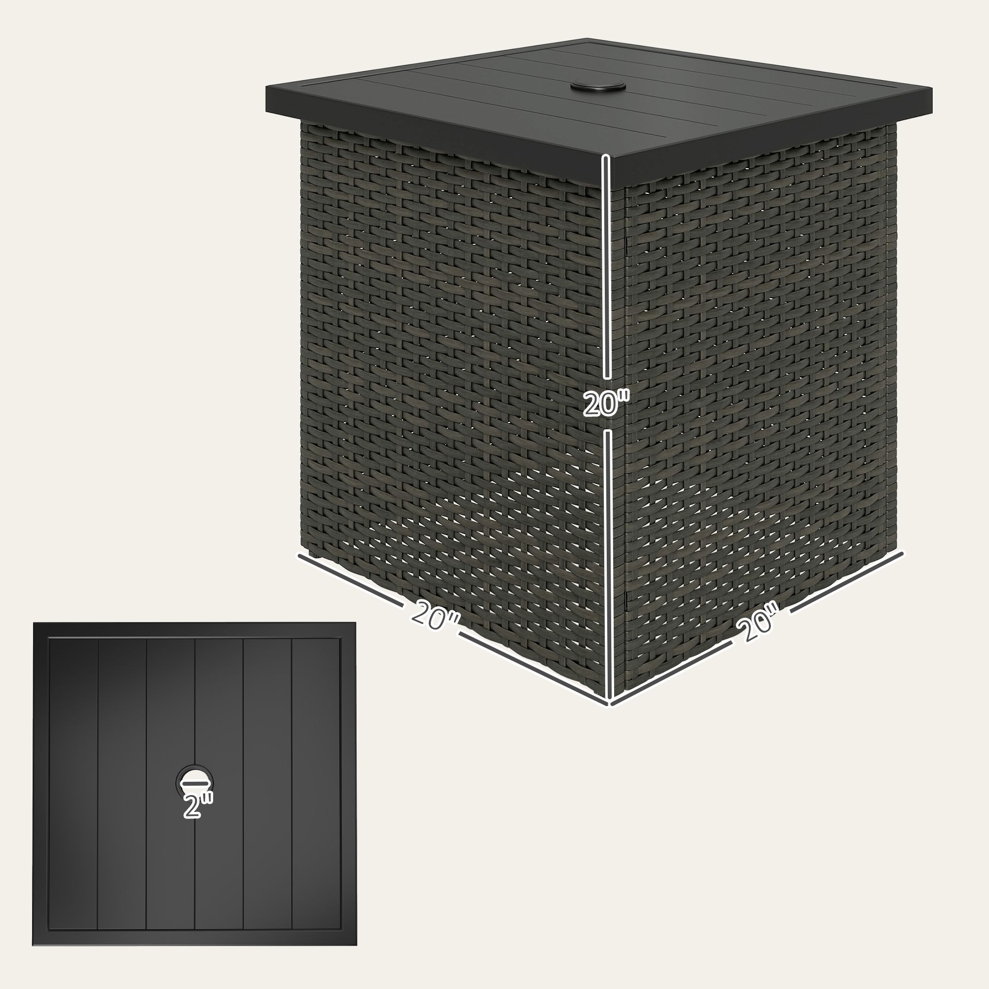 Wicker Side Table with 1.5" Umbrella Hole, Square Outdoor End Table with UV-Resistant Frame, Storage Space, Mixed-Brown Wicker Side Table with 1.5" Umbrella Hole, Square Outdoor End Table with UV-Resistant Frame, Storage Space, Mixed-Brown Wicker Side Table with 1.5" Umbrella Hole, Square Outdoor End Table with UV-Resistant Frame, Storage Space, Mixed-Brown